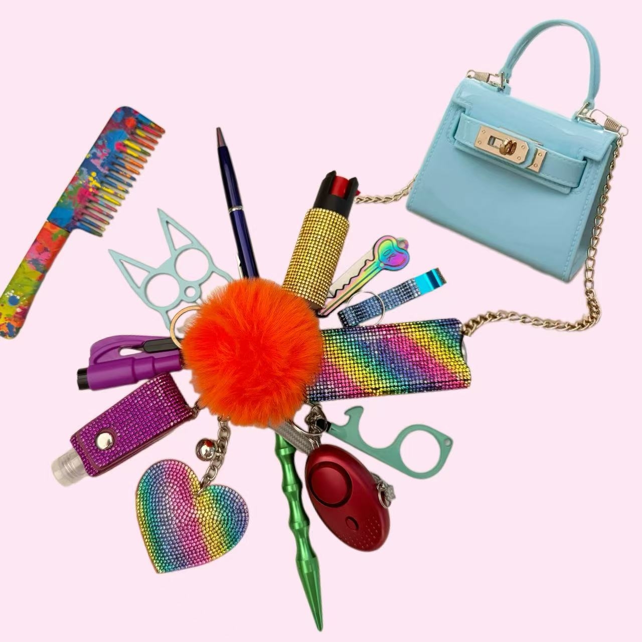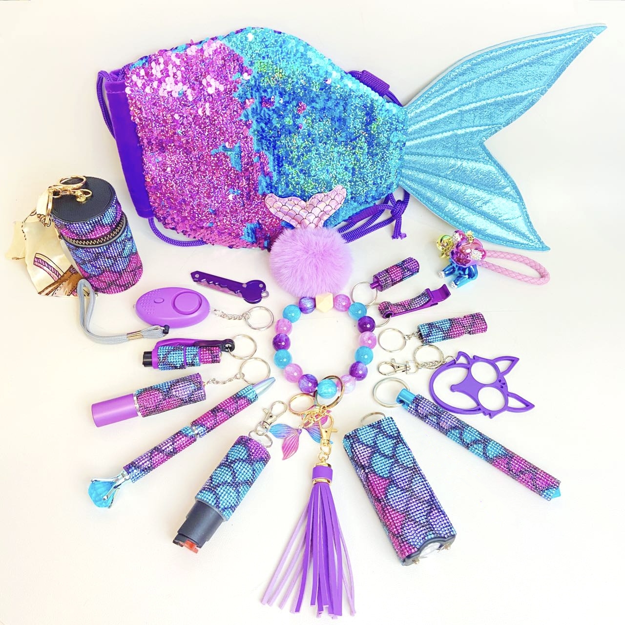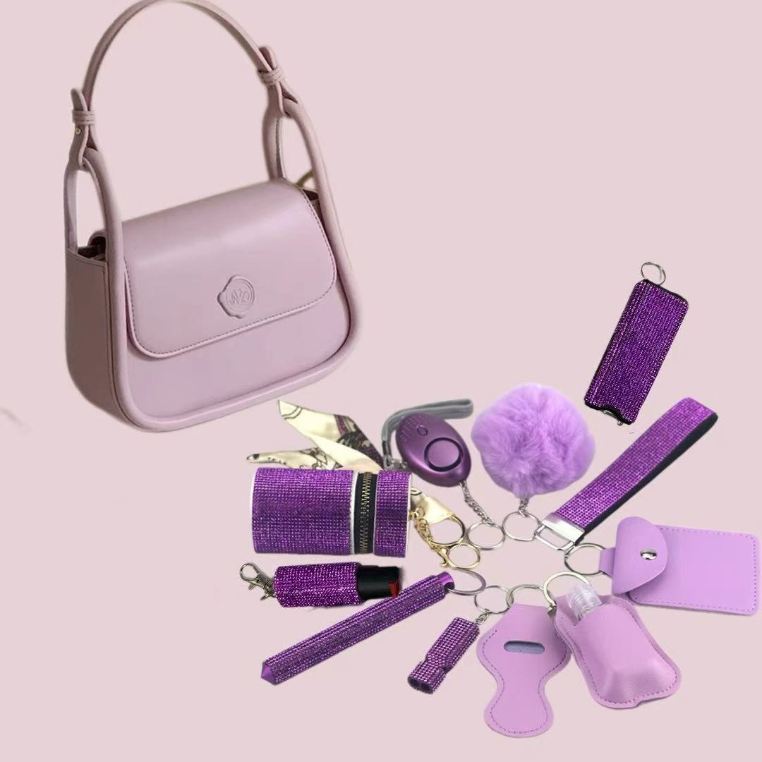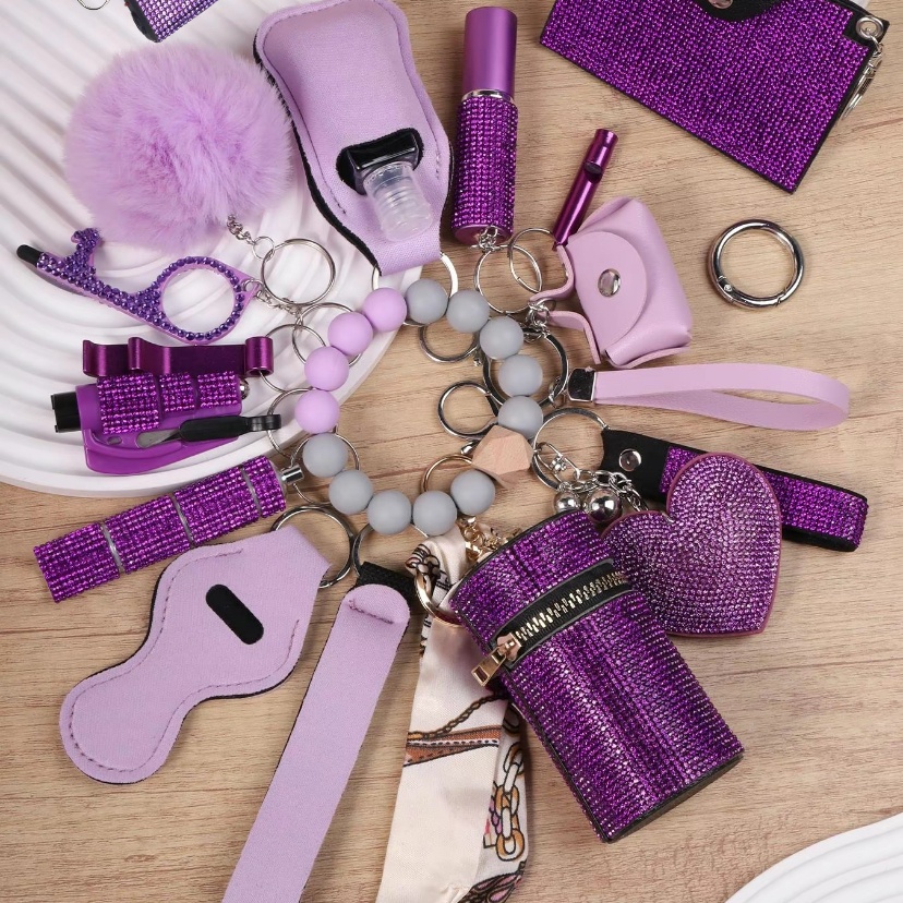 Purple Personalized Mini Self Defense Keychains Suitcase Set Customization Available